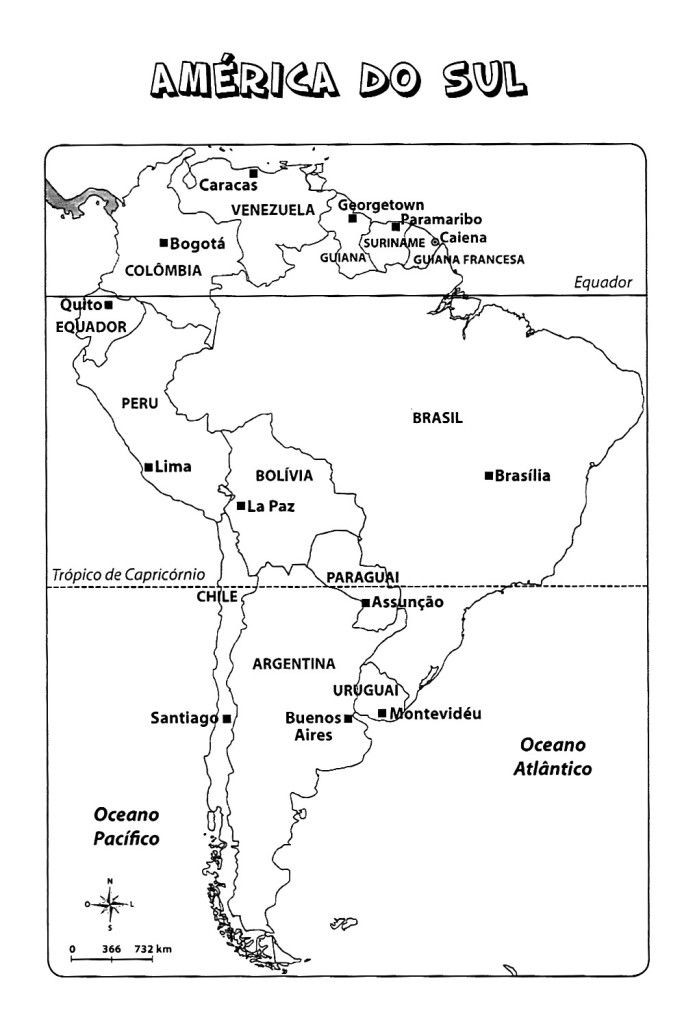 - Pinte os oceanos que banham a América do Sul. ( azul)