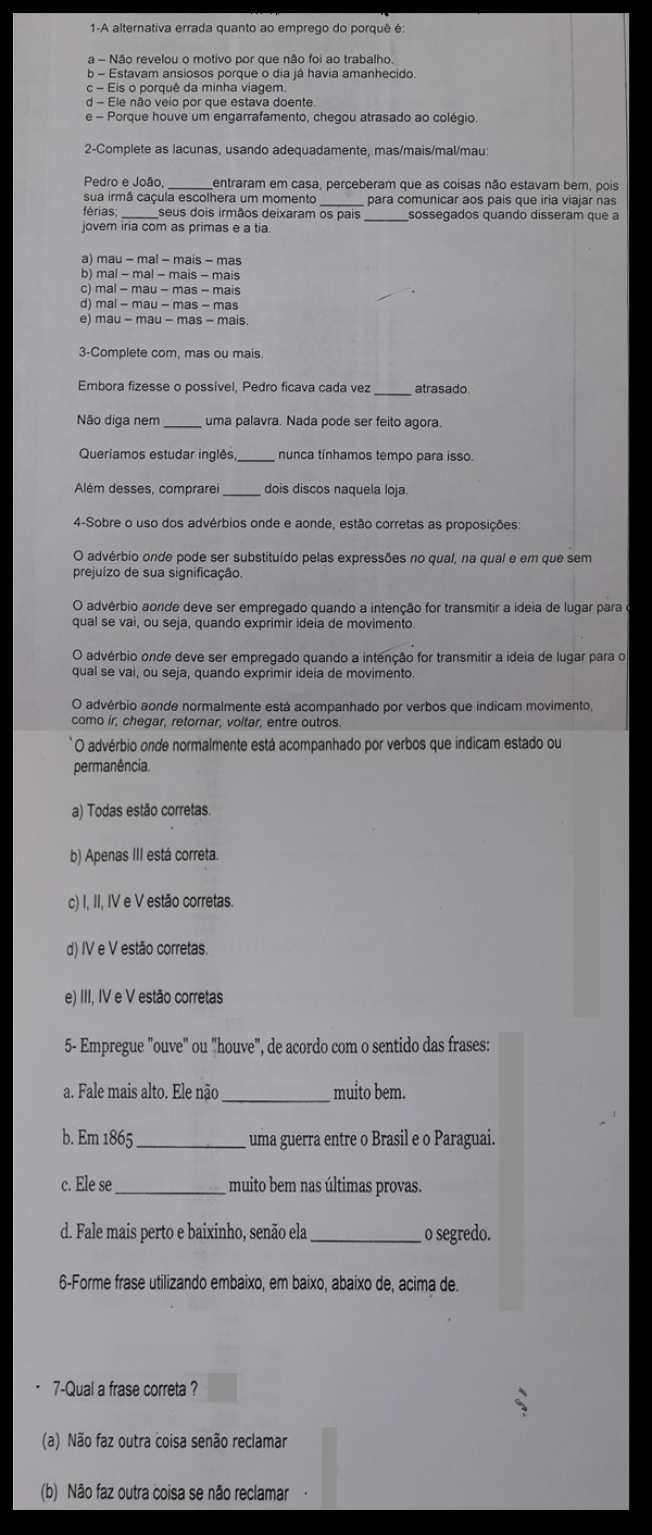 Preencha as lacunas abaixo com a conjugação correta do verbo entre parênteses.